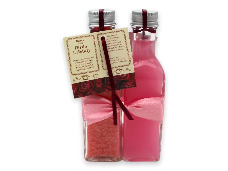 Leírás: 100ml habfürdő 100ml fürdősó rózsa illatban.