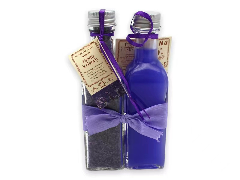 Leírás: 100ml habfürfő 100ml fürdősó levendula illatban.